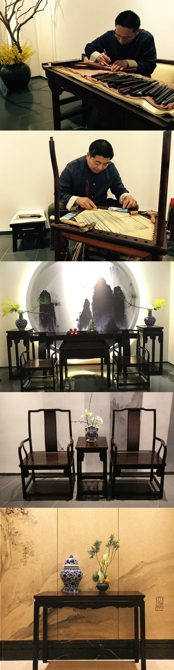 木中顯貴、十檀九空”,小葉紫檀非數(shù)百年不能成材,歷來為皇家御用木材,由其制作的古典家居更是精美絕倫、價(jià)值連城。本次展覽現(xiàn)場所展出羅漢床、南官帽椅套組等市面罕見、制作精良的小葉紫檀家具,均由國家頂級權(quán)威木材鑒定機(jī)構(gòu)出局認(rèn)定證書,經(jīng)過嚴(yán)格的檢驗(yàn)篩選而最終呈現(xiàn)。無論材質(zhì),還是制作工藝,都讓到場客戶紛紛稱奇。