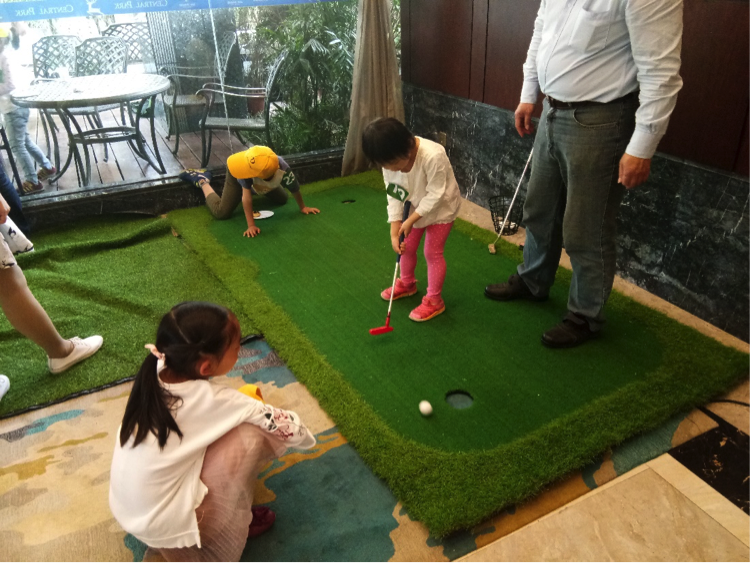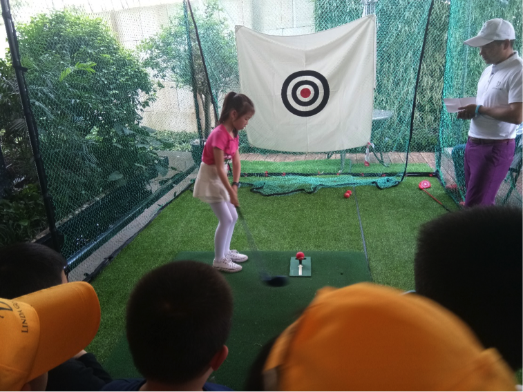 小學(xué)員們初步了解高爾夫球桿的構(gòu)造、站姿及握桿的方法之后,開(kāi)始嘗試展示優(yōu)美的姿勢(shì)及完美的動(dòng)作。在學(xué)習(xí)與游戲相結(jié)合中,小學(xué)員對(duì)高爾夫的興趣、高爾夫知識(shí)、身體的協(xié)調(diào)性和反應(yīng)速度也有著大大的提升。家長(zhǎng)和孩子們盡情領(lǐng)略高爾夫魅力的同時(shí),還品嘗了由中央公園貼心提供的美味披薩、甜心泡芙等冷餐,氣氛溫馨又甜蜜。