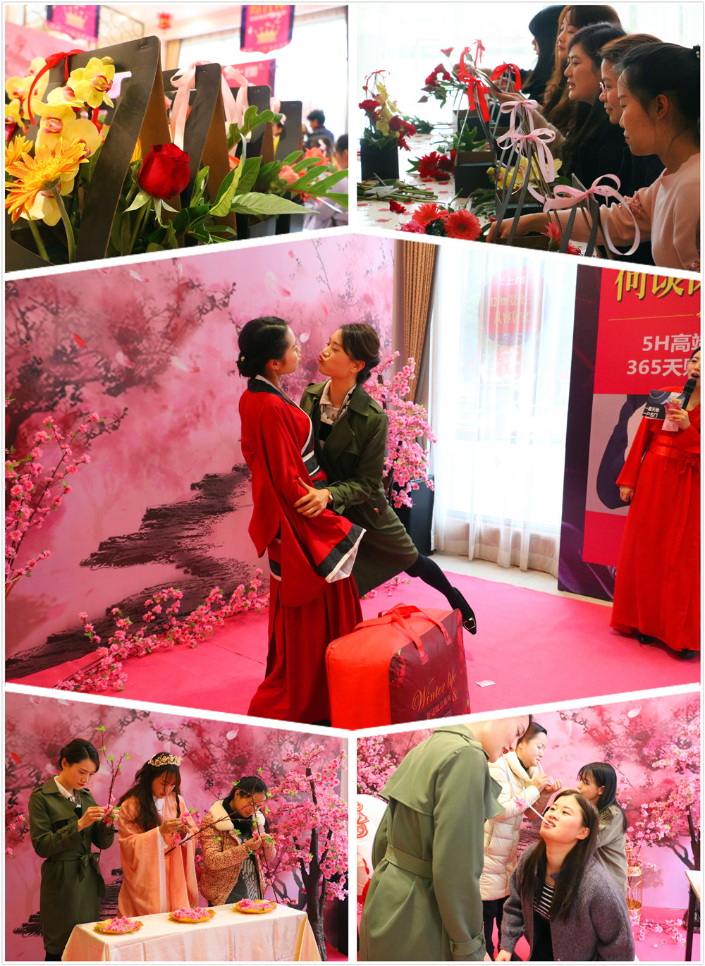 人面桃花相映紅,錦簇花團春意濃,在女神們巧手下,一籃籃花藝靚麗可人;編織桃樹,點綴桃花,三生三世情緣綻放,傳遞桃花,默契配合,趣味互動歡樂多;當然,驚喜大抽獎是必不可少,看,仙女們收獲獎品后喜悅心情猶如桃花盛放。