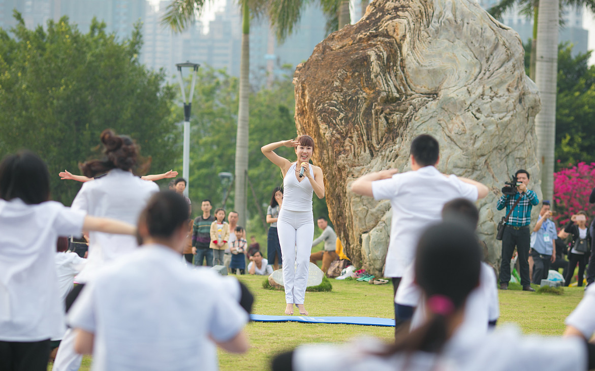悠揚(yáng)充滿靈性的音樂,沐浴著溫馨的交流氛圍,當(dāng)天現(xiàn)場人氣爆滿,吸引了漳州塔塔瑜伽、釋然瑜伽、禪心瑜伽等多家瑜伽館和社會(huì)大眾的積極參與,場面十分美好。當(dāng)天下午4點(diǎn),活動(dòng)正式開始,在一曲優(yōu)雅的瑜伽音樂中,專業(yè)瑜伽教練的表演,拉開了正常活動(dòng)的序幕,柔美的瑜伽動(dòng)作,向現(xiàn)場客戶及來賓展示了瑜伽的極致魅力。感受著如此迷人的瑜伽,現(xiàn)場觀眾紛紛受到吸引與鼓勵(lì),加入專業(yè)瑜伽老師的現(xiàn)場教學(xué)行列,贏得老師和觀眾的陣陣掌聲。