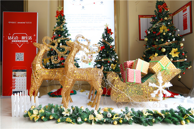 一走進售樓處,巨型的圣誕樹、金光閃閃的麋鹿及夢幻般的雪景布置,以及歡快的圣誕主題裝飾……整個營銷中心都已沉浸在圣誕節(jié)浪漫的氣氛中。