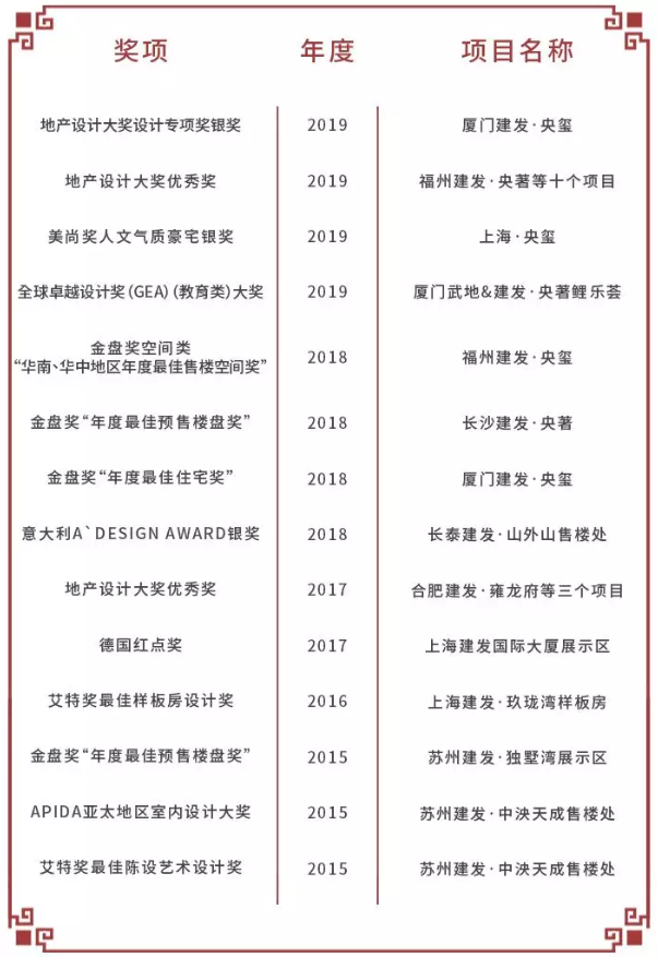 ▲ 建發(fā)房產(chǎn)近年部分獲獎(jiǎng)項(xiàng)目