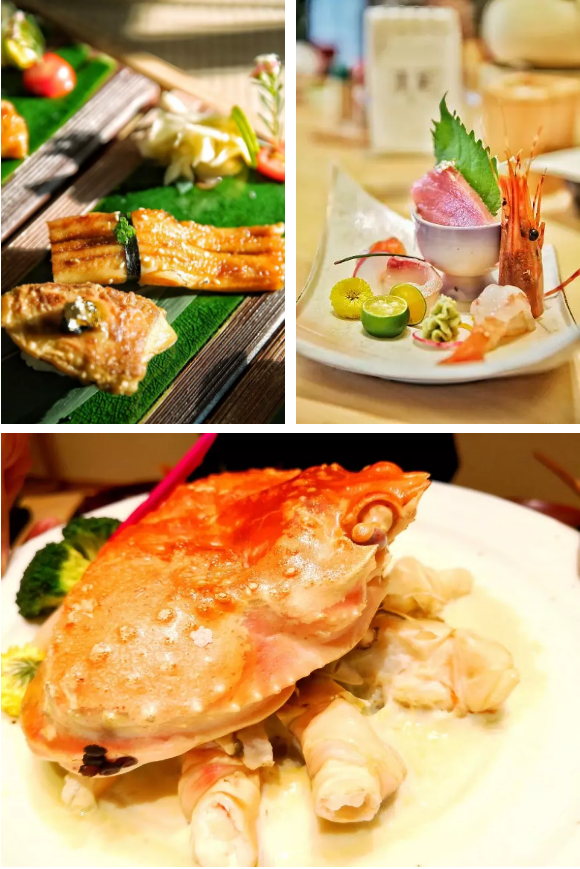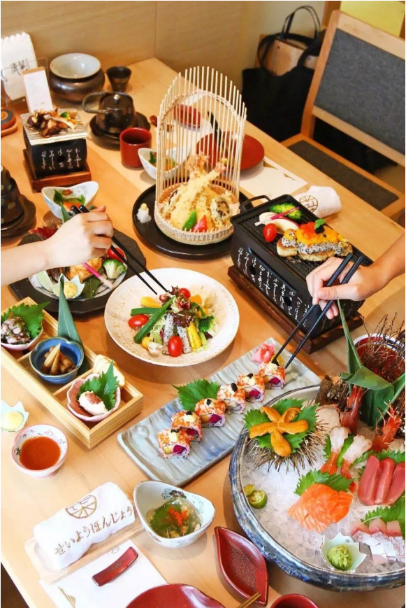 三文魚(yú)北極貝刺身雙拼,三文魚(yú)厚切大片油脂豐富、北極貝新鮮脆爽;樸葉牛肉,牛肉冒著油花滋滋作響,烤葉子的香氣浸透到肉中,鮮美可口;香煎鵝肝佐鮮果醬,鵝肝煎到金黃酥脆,搭配火龍果和芒果,別有風(fēng)味;喜歡榴蓮的朋友,可以盡情嘗試一下芝士焗榴蓮,感受榴蓮的香氣四溢、味美不膩。清葉已經(jīng)成為食客們念念不忘的日料店。