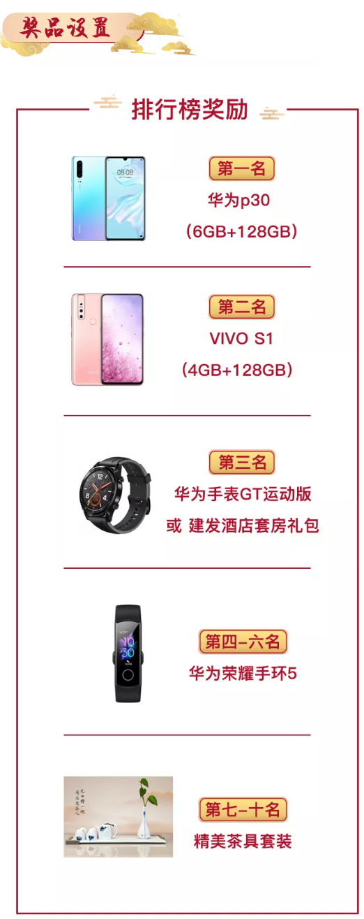 ▲ 在游戲截止時,成功完成拼圖數(shù)最高的前十名玩家可獲得對應(yīng)的排行榜獎勵,第一名為華為p30(6GB+128GB)手機(jī)。