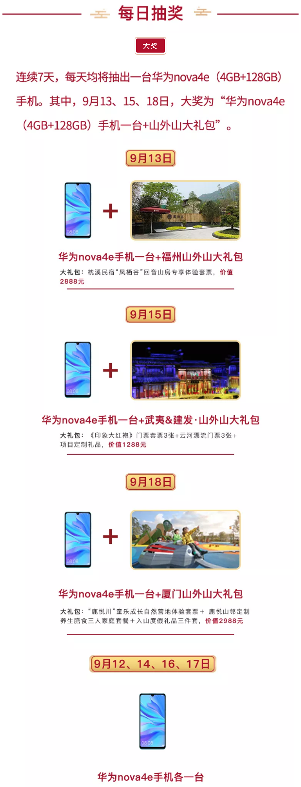 ▲ 使用25積分可抽獎一次,每日有華為nova4e(4GB+128GB)手機(jī)等大獎送出。