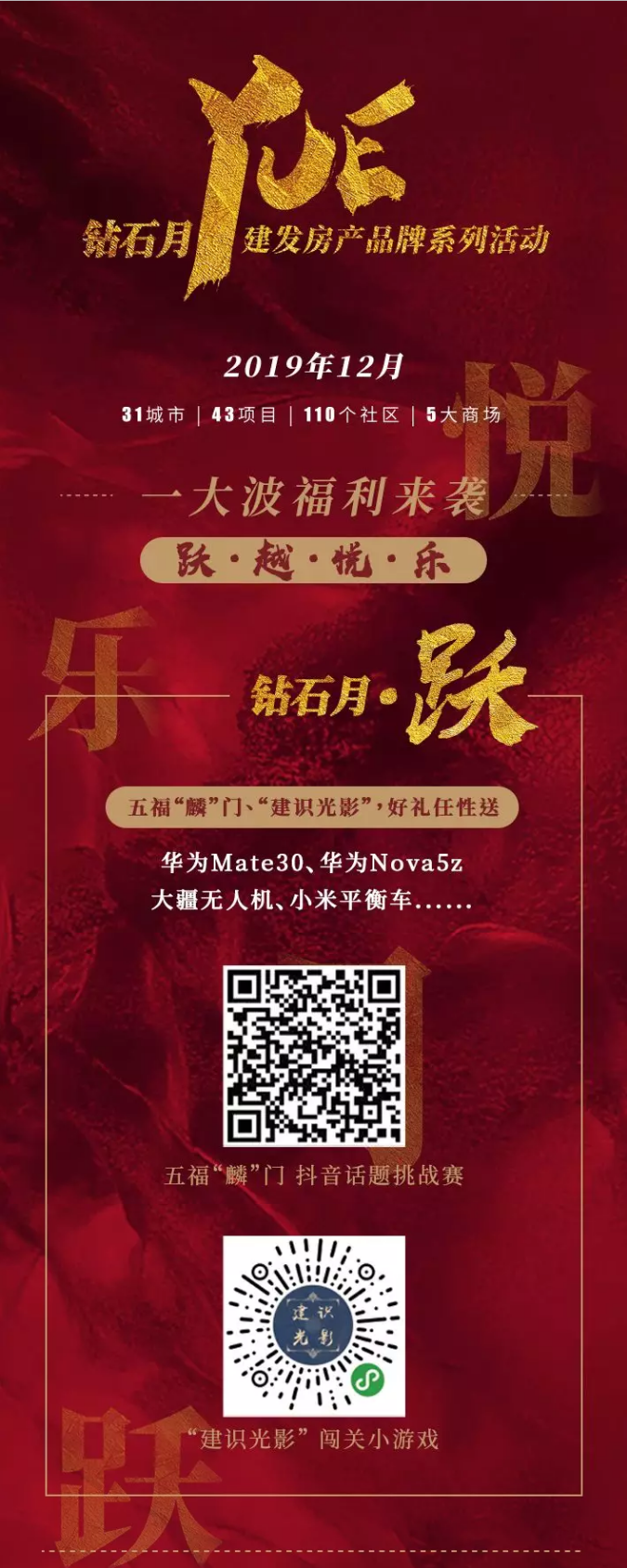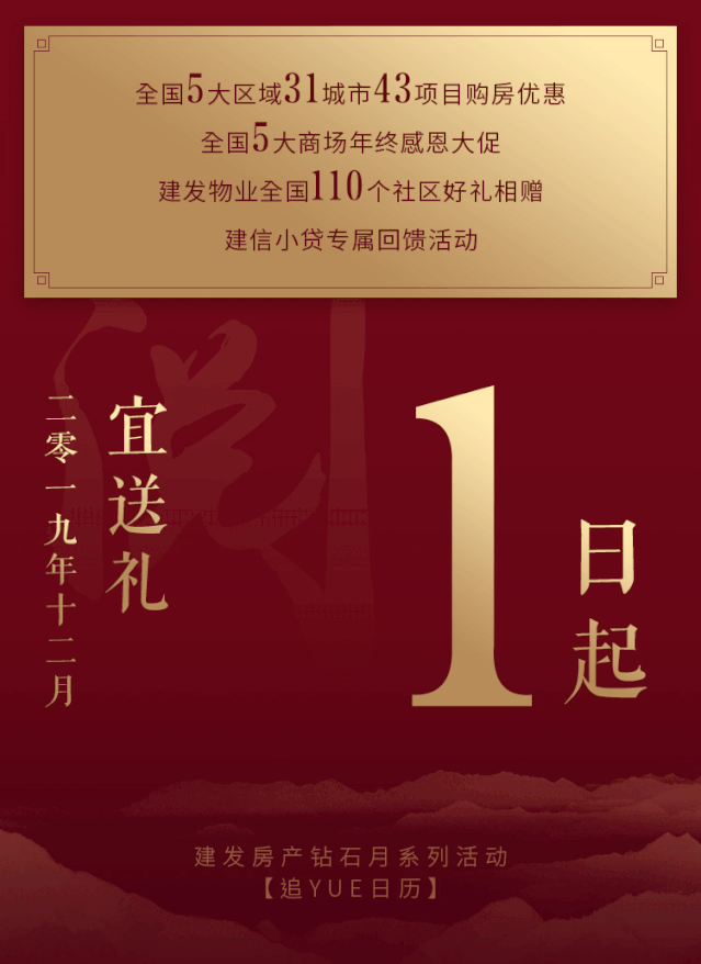12月,建發(fā)房產(chǎn)重磅推出鉆石月回饋活動和福利,整合6大業(yè)務(wù)板塊資源,覆蓋31城市、43項目、110個社區(qū)、5大商場,呈現(xiàn)更多精彩。
